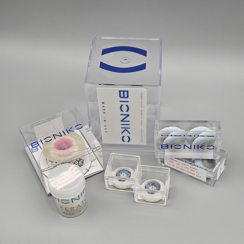 Practice penetrating keratoplasty (PKP) and corneal suturing with high-fidelity tissues, or manage ocular trauma scenarios. The kit also includes specialized anterior segments for practicing iris suturing and repair in a realistic surgical environment.